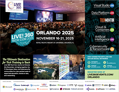 With six co-located events—Visual Studio Live!, Data Platform Live!, TechMentor, Artificial Intelligence Live!, Cloud & Containers Live!, and Cybersecurity & Ransomware Live!—Live! 360 gives you the freedom to build your own custom learning journey.
